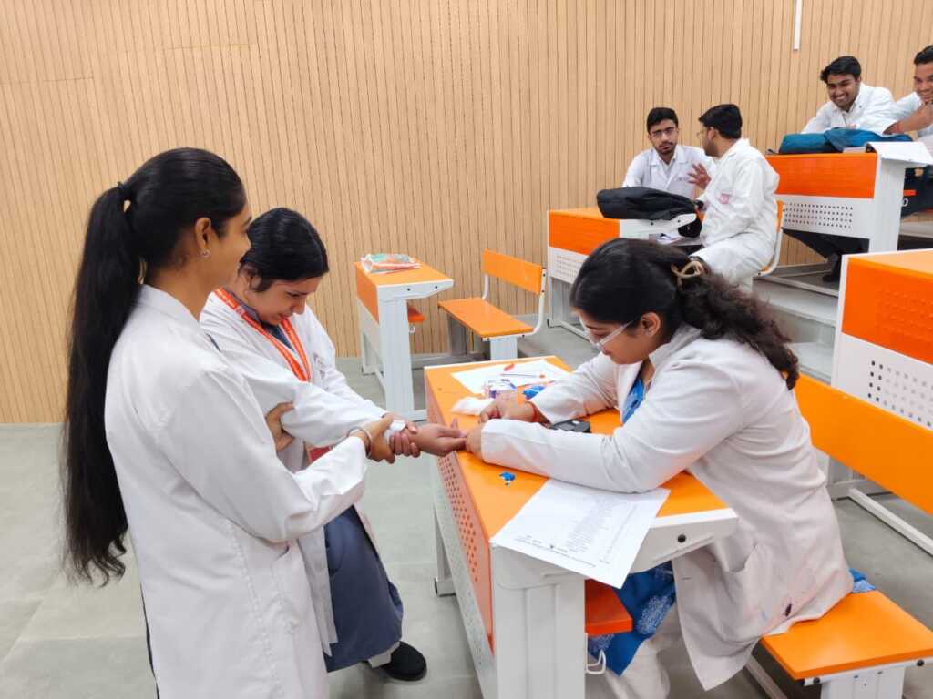 दीपांकुश चित्रांश क़ी रिपोर्ट…खबर उत्तर प्रदेश के सुल्तानपुर जिले से है जहाँ स्वायत्तशासी राज्य मेडिकल कॉलेज में फार्माकोलॉजी एवं बायोकेमिस्ट्री विभाग द्वारा विश्व मधुमेह दिवस के उपलक्ष्य में जागरूकता कार्यक्रम का आयोजन किया गया। कार्यक्रम के तहत सुबह 8:00 से 9:00 बजे के बीच 100 विद्यार्थियों का रैंडम ब्लड शुगर (RBS) मॉनिटरिंग किया गया। इस दौरान उपस्थित फैकल्टी सदस्य डॉ. स्वाति राय, डॉ. प्रतिभा,साथ ही सीनियर रेज़िडेंट डॉ.सिद्धांत लोहिया,और जूनियर रेज़िडेंट डॉ.सुमति,डॉ.अनन्या, डॉ. ज्ञानेन्द्र व डॉ. खुशबू मौजूद रहीं।